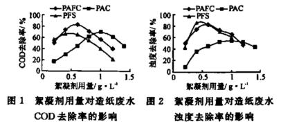 聚合氯化鋁鐵 PAFC對(duì)于造紙廢水COD的去除率(82.53%),明顯高于PAC(70.15%)和PFS(66.90%)的處理效果